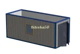 По конструкции и комплектации модель БК-07 мало чем отличается от стандартных строений. Она имеет сварной каркас из гнутого швеллера 100x50x3 мм, боковые стойки сделаны из уголка 90 х 90 мм (усиленный). Жёсткий каркас хорошо переносит нагрузки, которые возникают при доставке, а также установке модуля. Все детали обязательно покрываются краской, которая защищает металл от коррозии.