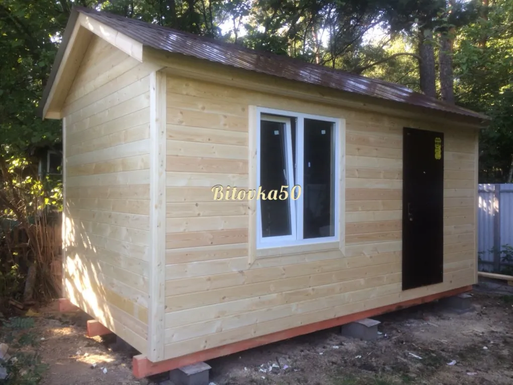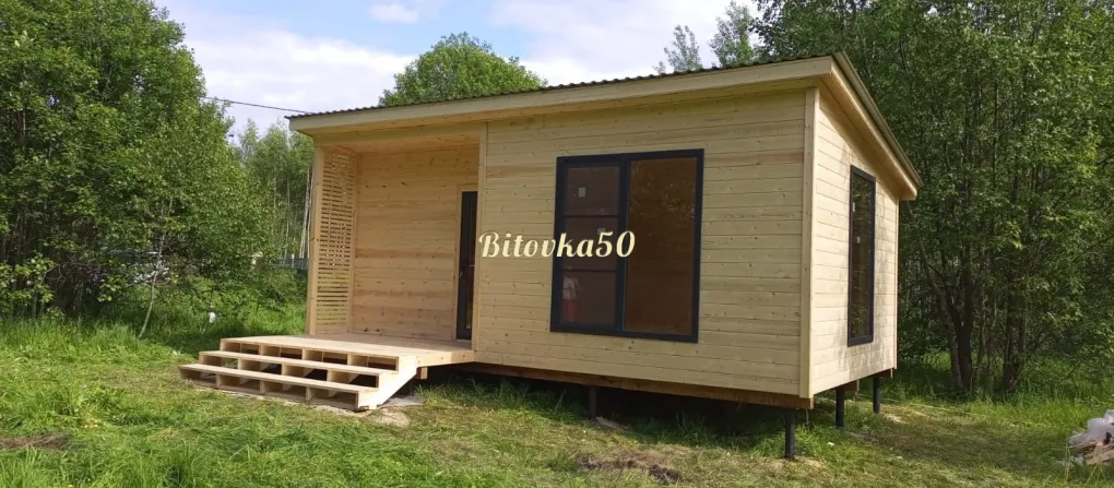 Стандартная ширина дачной бытовки – 2,3 метра. Такие домики максимально удобны при транспортировке, но для жизни Вам может потребоваться больше пространства! Поэтому мы предлагаем Вам бытовку увеличенных размеров: 6 на 3 м. Впрочем, длина здания может быть и другой: от 5 до 8 метров.
