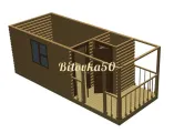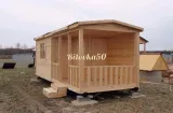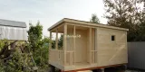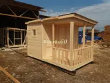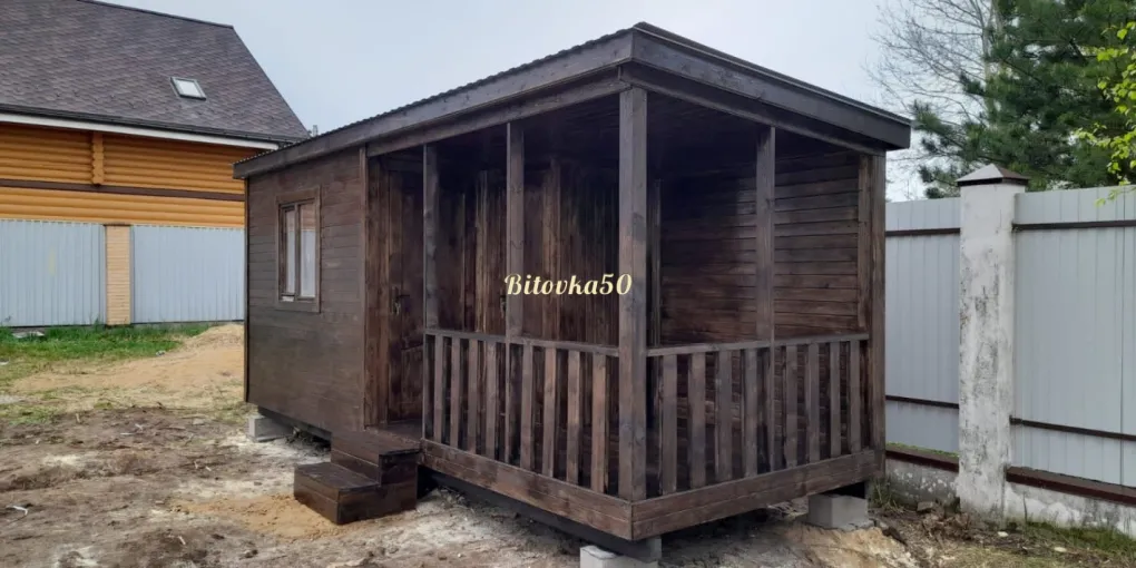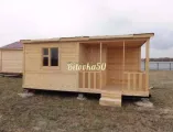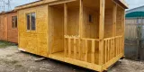 Удобный и эстетичный садовый дом с верандой и подсобным помещением — практичный выбор для проживания на даче в летний сезон. Дачная бытовка этой модели состоит из жилой комнаты, небольшой кладовки 1 × 1 метр для хранения инструмента и деревянной веранды длиной 2-3 метра. Каркасный дачный домик с верандой гармонично впишется в ландшафт загородного садового участка. Крытая веранда не только служит местом для отдыха дачников в жаркие дни, но и помогает сохранить комфортный микроклимат в жилой комнате.