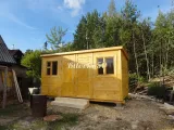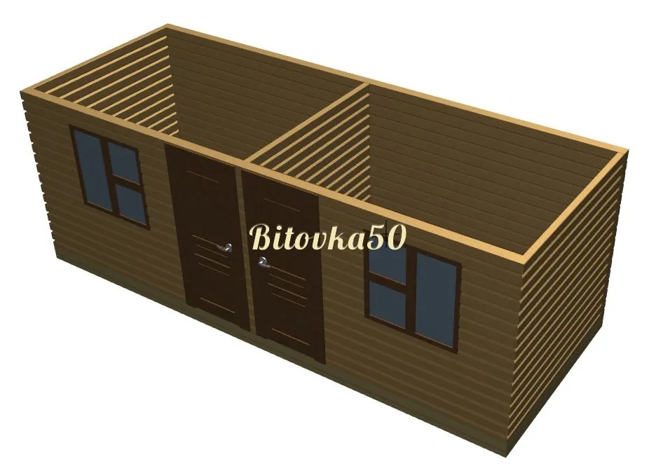 Дачная двухкомнатная бытовка с двумя изолированными помещениями — удачное решение для проживания двух семей. Эту планировку выбирают и для размещения строительных бригад, когда в одной комнате размещается мужская часть коллектива, а во второй — женская. В базовую комплектацию двухкомнатной дачной бытовки включены две входные двери и два заводских окна с одинарным остеклением. Комнаты разделены сплошной деревянной перегородкой. На сайте производителя можно подобрать двухкомнатную бытовку для дачи длиной 5, 6, 7 или 8 метров. Внутренние помещения бытовки отделаны евровагонкой, пол и потолок двойные, между слоями обшивки располагается утепляющий материал «ТеплоКнауф» и рулонная парозащита «Гидропроф». Крыша строения имеет уклон для стока влаги, в качестве кровельного покрытия используется влагостойкий рубероид. Снаружи домик отделан качественной хвойной вагонкой, которую можно покрасить в желаемый цвет или покрыть слоем лака.