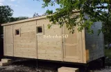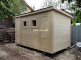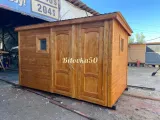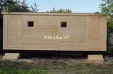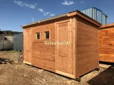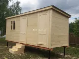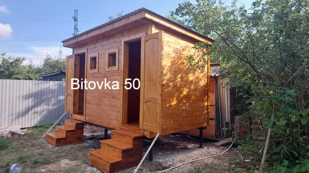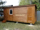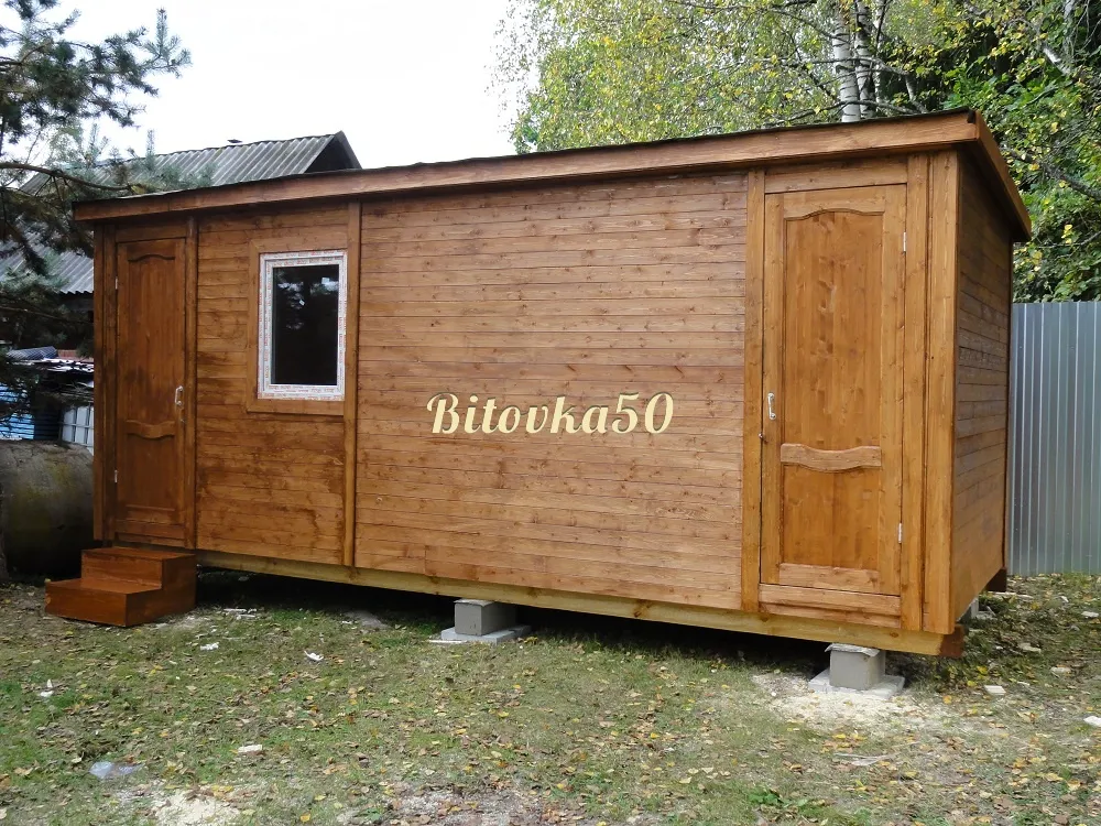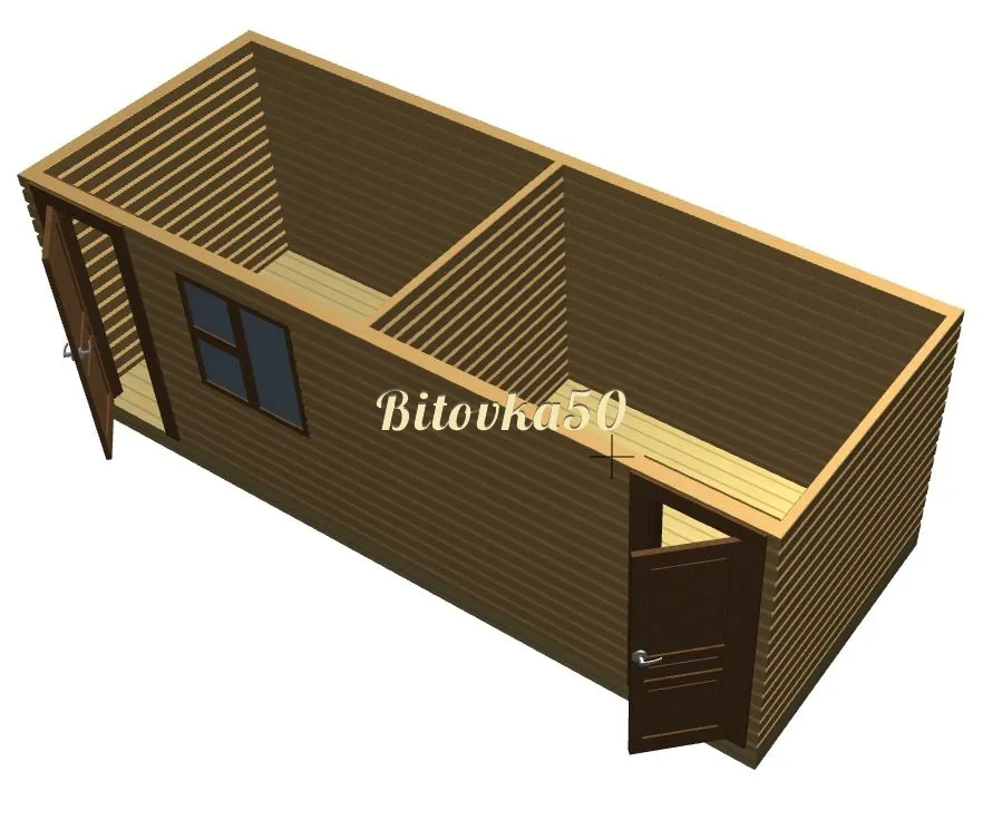 Прочный и долговечный садовый домик-бытовка, состоящий из двух изолированных комнат с отдельным входом. Может использоваться как для проживания на даче, так и в качестве хозблока, летней кухни или подсобного помещения на приусадебном участке. В каталоге производителя представлены модели садовых бытовок из двух отдельных блоков длиной 4-8 метров. В стандартную комплектацию включены две отдельные входные двери и два небольших квадратных окна 50×50 см. Компактная бытовка 4×2,3 метра — оптимальное решение для оборудования на даче санитарного блока из душевой и санузла. Также эта модель бытовки может совмещать функции жилого помещения и хозблока в одном здании.