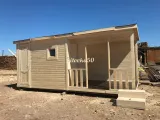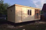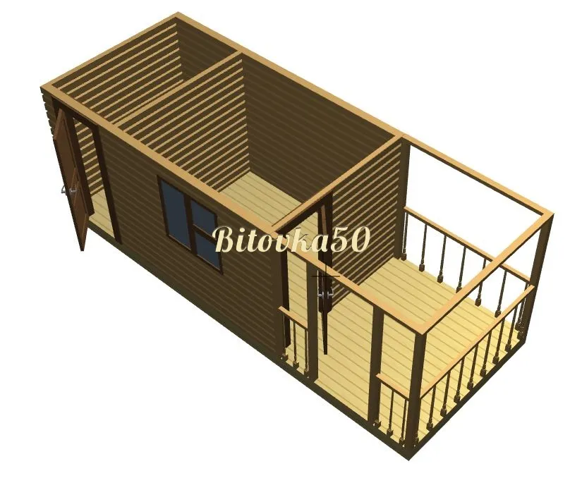 Уютный садовый домик с верандой и отдельной кладовкой — идеальный выбор для загородного участка. Планировка строения включает просторную жилую комнату с окном и входной дверью, подсобное помещение с отдельным входом и открытую деревянную веранду. Дачные домики с верандой идеально впишутся в дизайн садового участка, а веранда защитит от солнца в жаркий день и станет отличным местом для отдыха в дождливую погоду. Садовые бытовки обшиты снаружи и изнутри длинной вагонкой, между слоями обшивки проложен слой утепляющего материала «ТеплоКнауф» и пароизолирующей плёнки. Крыша домика односкатная, покрыта рубероидом, имеет небольшой уклон для отведения осадков. При своевременном ремонте и бережной эксплуатации срок службы каркасной бытовки составляет 15-20 лет.