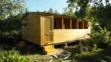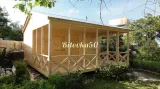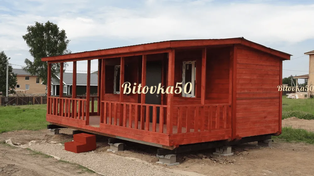 Для этой цели вполне подойдёт обычный дачный домик, сделанный из бытовок. Он представляет собой деревянный вагончик с пристроенной к нему верандой. Вся эта конструкция располагается на сваях. Это очень удобно, так как приподнятый на достаточный уровень, садовый домик не соприкасается с землёй и, следовательно, его пол будет менее подвержен воздействию атмосферной среды и разрушению. Жилая площадь домика невелика, но её вполне достаточно для пожилой пары или для молодой семьи с одним или двумя маленькими детьми. При желании, помещение можно перегородить и сделать во второй комнате кухню или детскую. Обычно с таких садовых бытовок и начинается освоение только что приобретённого дачного участка. Огромным плюсом подобного домика из бытовки является лёгкость его транспортировки и скорость возведения. Потребуется всего 2-3 дня, и вы сможете праздновать начало загородной жизни, наслаждаться свежим воздухом и просторами сельской местности.