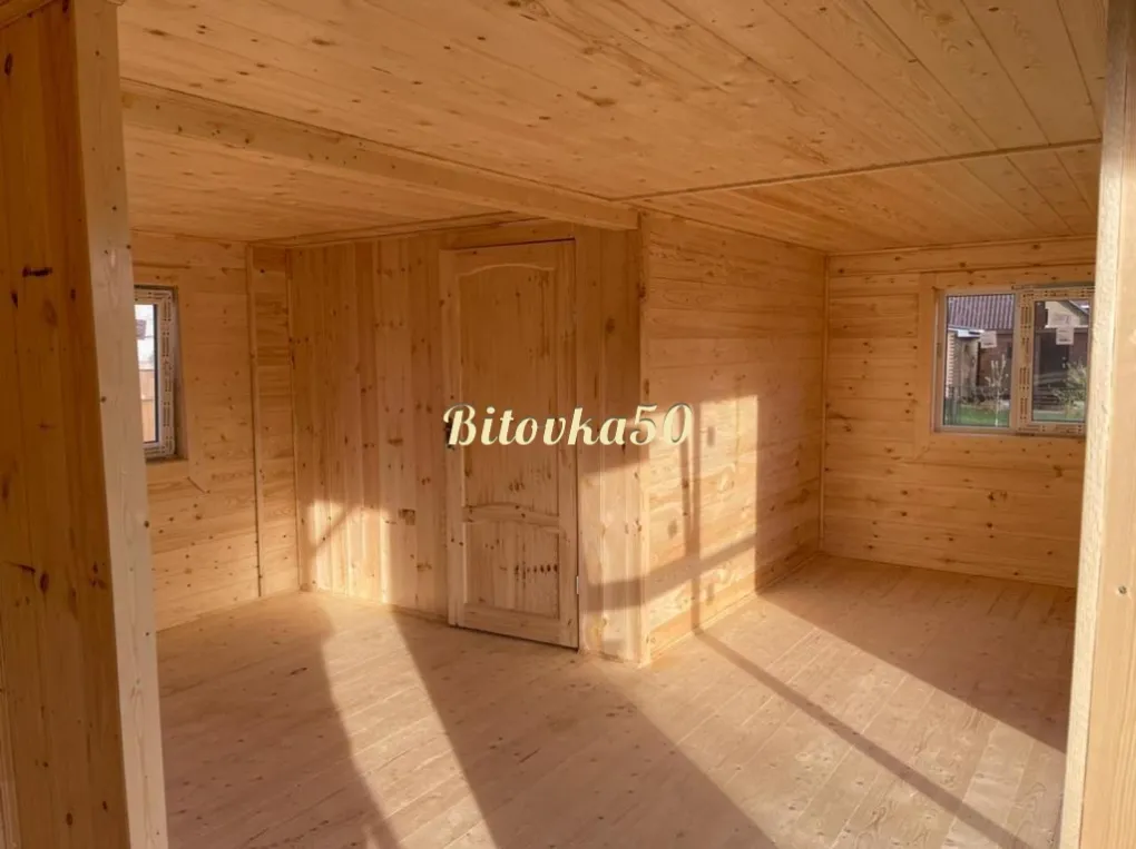 Также как внутренняя обшивка, оконные и дверные блоки могут иметь разную конструкцию. Недорогие — деревянные окна с одинарным остеклением размерами 1 х 1 метр. Но часто вместо них клиенты заказывают пластик. Он лучше защищает от холода и служит дольше. Входная дверь — стальная, российского производства. |