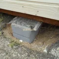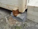 Бытовку можно установить и на фундаментные блоки, и это, пожалуй, самый простой способ. По периметру здания вкапываются 6-8 бетонных блоков с выравниванием по высоте при помощи уровня. Вся конструкция накрывается листом рубероида или фанеры, а сверху устанавливается дачная бытовка.