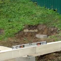 При подготовке площадки под каждый блок выкапываются ямки, насыпается песчаная подушка, а блоки выравниваются по уровню.